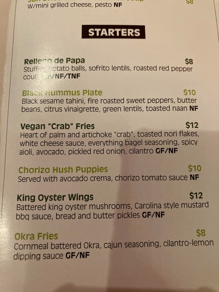 battered okra, cilantro-lime aioli (contains cashews), and scallions*Contains Nuts (cashews)
